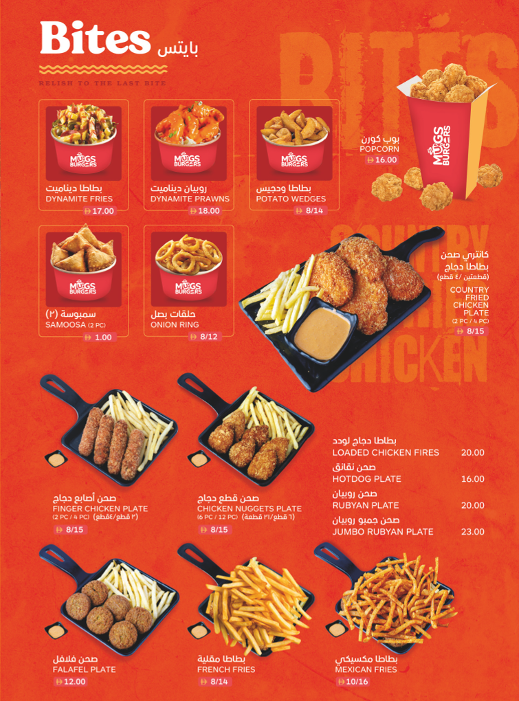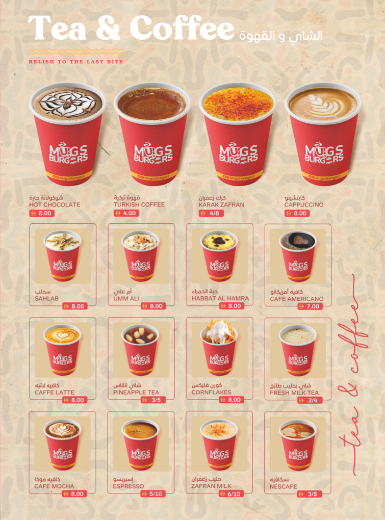 Mugs & Burgers Cafeteria Menu